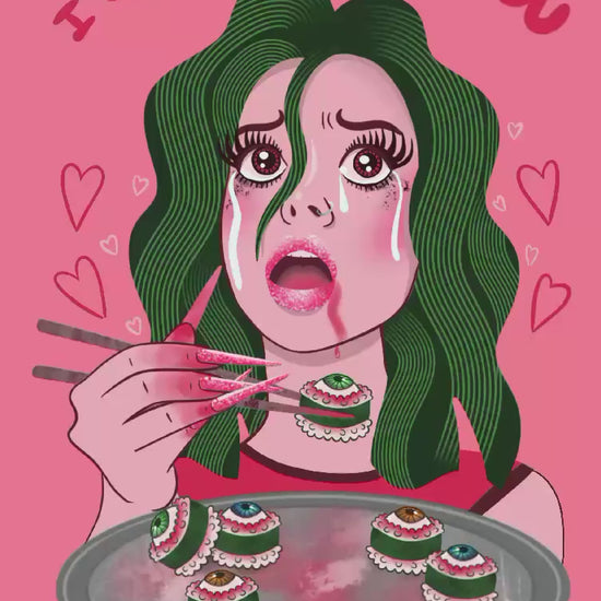 MOODY MO DESIGNS // “I ONLY HAVE EYES FOR YOU, I SWEAR!” Eyeball Sushi Girl POSTCARD